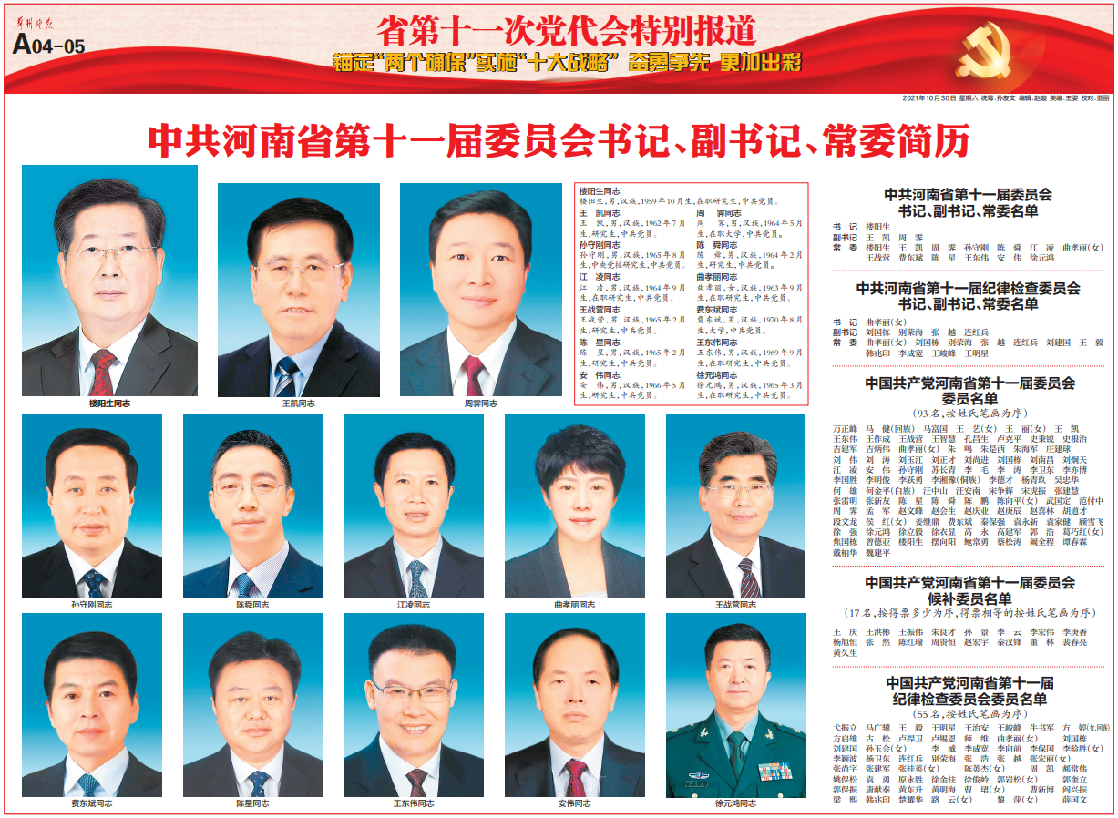 中共河南省第十一屆紀律檢查委員會 書記、副書記、常委名單