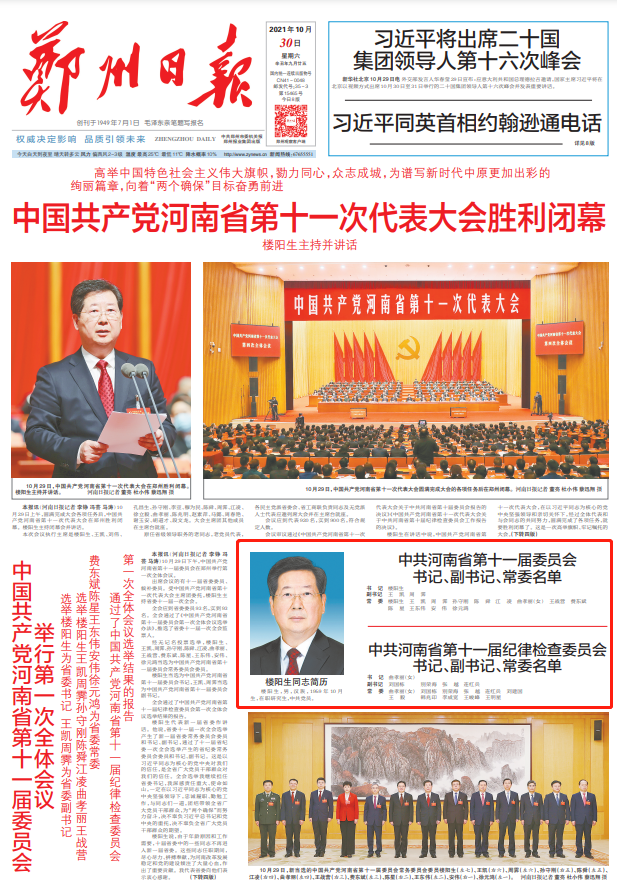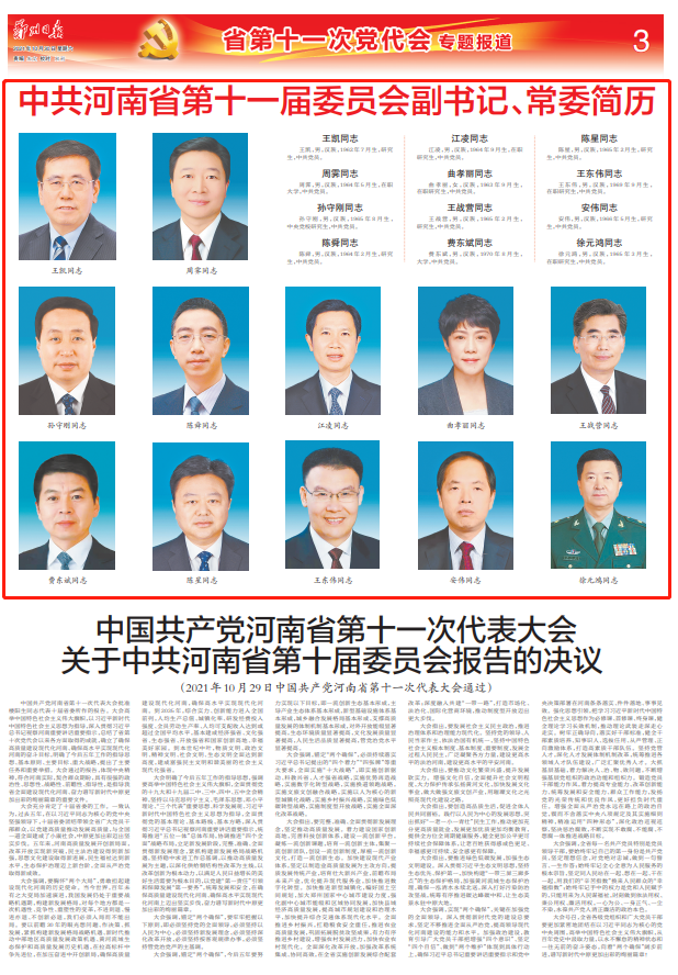 中共河南省第十一屆委員會 書記、副書記、常委名單