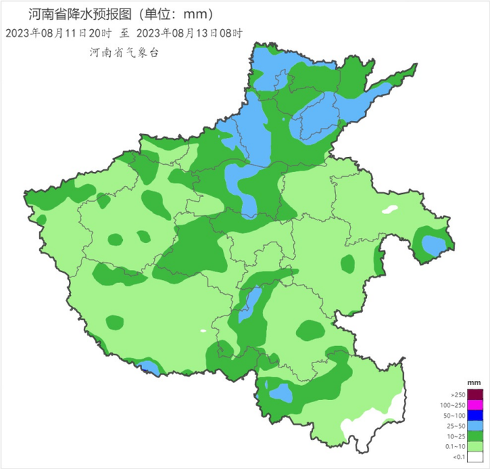 具體預報情況為:11日白天,西部、北部晴天轉多云,其他縣市晴天到多云;傍晚到夜里,西部、北部多云轉陰天,其中安陽、鶴壁、新鄉西部、焦作、濟源、三門峽北部、洛陽北部部分縣市有小到中陣雨、雷陣雨,局部大雨,其他縣市晴天轉多云。12日,全省陰天間多云,大部有陣雨、雷陣雨,雨量分布不均,其中北中部、南部部分縣市中到大雨,局部暴雨,伴有短時強降水、雷暴大風等強對流天氣。13日,全省多云,黃河以南部分縣市有陣雨、雷陣雨。