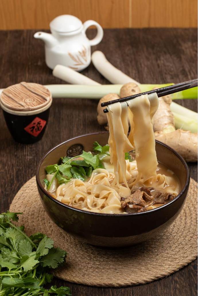 御賓苑特色老鄭州燴面的高湯是用鮮嫩的全山羊骨配以當歸、黃芪、枸杞等30余種中草藥調料配制而成。湯肥肉嫩,面光而筋,質高量足,作料齊全,湯味濃郁,清香可口,始終堅持一碗一做的宗旨。