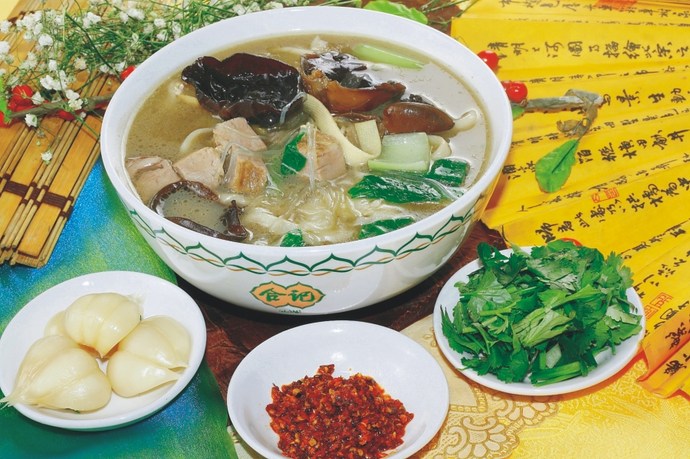 “會(燴)面”以味道鮮美、經濟實惠而享譽中原,遍及全國,有著悠久的歷史。燴面是以優質高筋面粉為原料,輔以高湯及多種配菜,一種類似寬面條的面食。