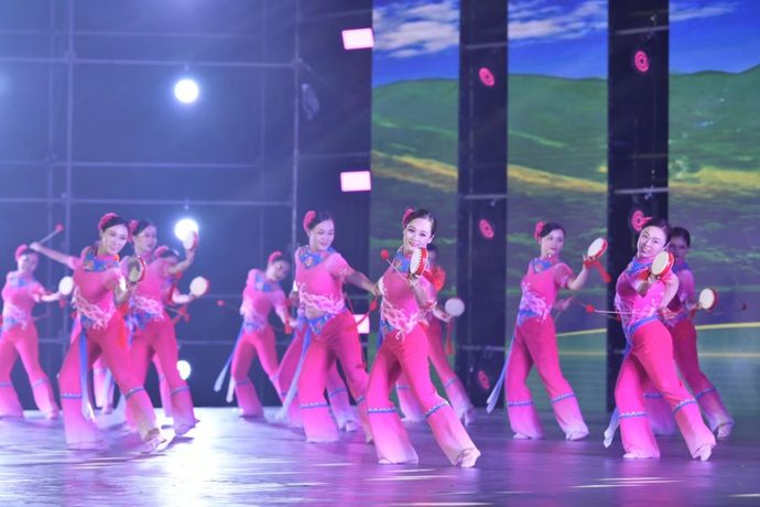 其中,安徽省鳳陽縣文化館青年藝術團表演的《歡騰的鼓鄉》,將國家級非物質文化遺產鳳陽花鼓融入廣場舞當中,以這種表現形式呼吁更多人加入健身隊伍、關注傳統文化。