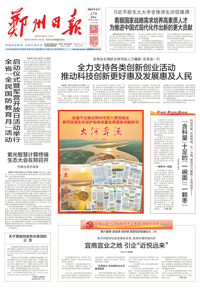 【大河奔流】——《鄭州日報》今日推出鄭州市深入貫徹落實黃河流域生態保護和高質量發展國家戰略特刊