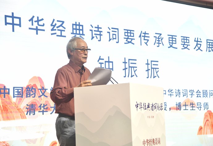 中國韻文學會榮譽會長(原會長),中華詩詞學會顧問,清華大學特聘教授,南京師大教授、博士生導師鐘振振,從詩歌創作、詩歌發展史觀、詩歌創作主張、唐人的“當代詩”的經典化等多方面論述了中華經典詩詞要傳承更要發展。