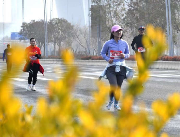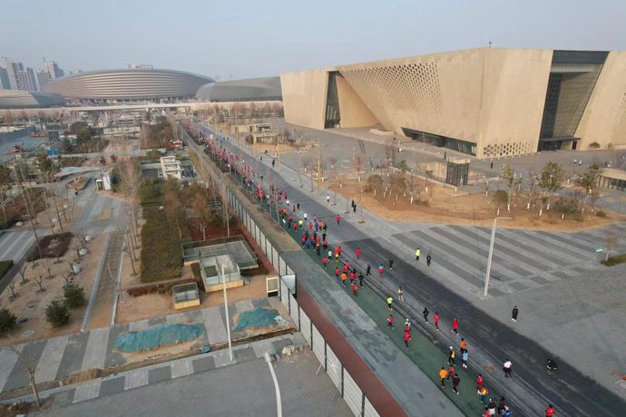 本屆鄭州市元旦長跑活動采取10公里競賽組和3公里全民健身組分槍起跑的方式進行。8時30分許,隨著響亮的發令聲響起,10公里競賽組的選手們率先出發,鄭州市的3000名長跑愛好者一個個熱情飽滿,沖出起跑線。5分鐘后,3公里全民健身組選手起跑,來自我市各機關事業單位、市屬企業、社團組織的8000人組成的長跑隊伍一道,邁著矯健的步伐,踏上新征程,奔向新目標。浩浩蕩蕩的長跑隊伍,像一條移動的巨龍,跑過奧體中心、中央文化公園、鄭州市博物館等地標建筑,讓冬日的綠城暖意融融、活力滿滿。