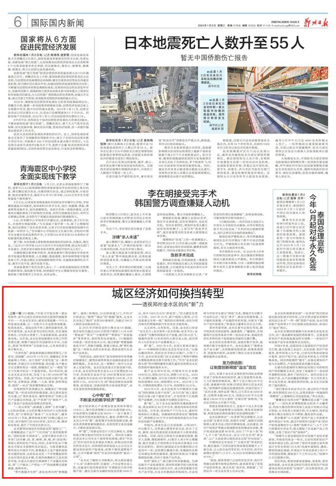 “開發城市少空間、經營城市缺資源”,如何告別傳統的發展路徑依賴,換擋轉型,實現高質量發展?《經濟參考報》1月2日以《城區經濟如何換擋轉型——透視鄭州金水區的向“新”力》為題,報道自2020年以來,金水區勇闖創新驅動“華山一條路”,凝聚向“新”力、培育新動能,努力推動經濟實現質的有效提升和量的合理增長。本報今日予以轉發,敬請關注。