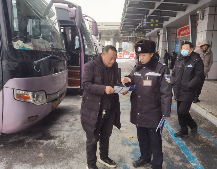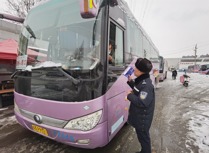 近日,降雪天氣增多,鄭州交警三支隊車管大隊民警深入轄區客運場站、客運企業開展交通安全檢查及教育警示活動,進一步強化客運企業源頭監管,防范化解雨雪惡劣天氣帶來的交通安全風險隱患,切實筑牢春運交通安全防線,保障廣大群眾出行平安。