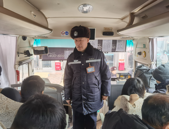 民警結合當前春運交通安全形勢和典型交通事故案例對客運駕駛員進行警示教育,重點指出酒駕醉駕、疲勞駕駛、超員超速等交通違法行為的危害性,強調雨雪惡劣天氣安全行車注意事項,要求駕駛員時刻繃緊交通安全弦,自覺遵守交通安全法規,杜絕交通違法行為,雨雪天氣行車時要保持車輛視線清晰和個人注意力集中,做到減速慢行、謹慎駕駛,防止意外發生。