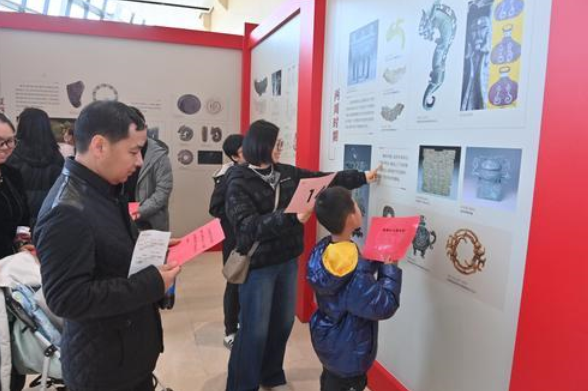 30道以“龍”為主題的趣味問答題,在“甲辰龍祥——歷代考古出土龍形文物圖片展”中均可以找到相應的答案,答對問題的還可以獲贈以龍為主題的書簽、掛件、剪紙、徽章等紀念品,增加了觀展的趣味性和互動性。現場氣氛熱烈,歡聲笑語不斷。市民們不僅展現出了對龍文化的濃厚興趣,還通過互動交流和討論,加深了對龍文化的理解和認同。