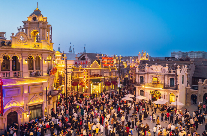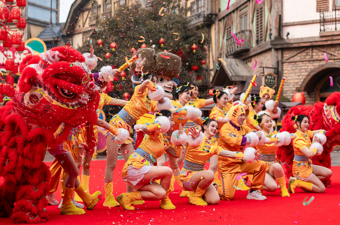 假日期間,在鄭州方特旅游度假區推出的“方特潮新年”“神龍鬧新春”活動現場,眾多游客漫步“龍面桃花”“新年桃歷”等有趣、新潮的打卡場景。“神龍秘境”巨型花燈帶給游客“璀璨星河不夜天”的別樣體驗,城堡煙花秀、新年狂歡派對、吉龍送福大巡游、桃源滾滾來等演出為大家送上一份充滿年味兒的“春節禮物”。