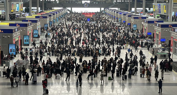 據統計,2月17日,鄭州鐵路發送旅客78萬人次,創春運以來單日客發新高。春節期間,國鐵集團鄭州局管內各大火車站探親、旅游、務工、學生等客流相互疊加,自2月14日(農歷正月初五)開始,旅客發送量連續4天超60萬人次持續高位運行。其中,鄭州東站、鄭州車站、商丘車站等車站客流量較大,主要集中發往北京、上海、廣州、深圳、蘭州、重慶等城市。假日期間,高峰日開行旅客列車1511列,最大限度滿足旅客出行需求。