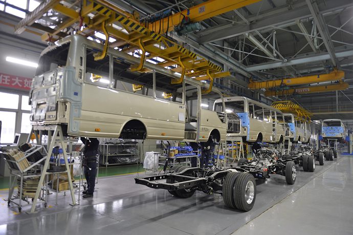 宇通把“機器人”也引入了焊裝車間。通過建立小—中—大分片的柔性焊接加工模式,分別在半成品、焊裝和底盤車間布局標準站、中型站和大型站三類機器人自動焊接工作站進行對應性加工,實現車身骨架全流程自動化焊接。