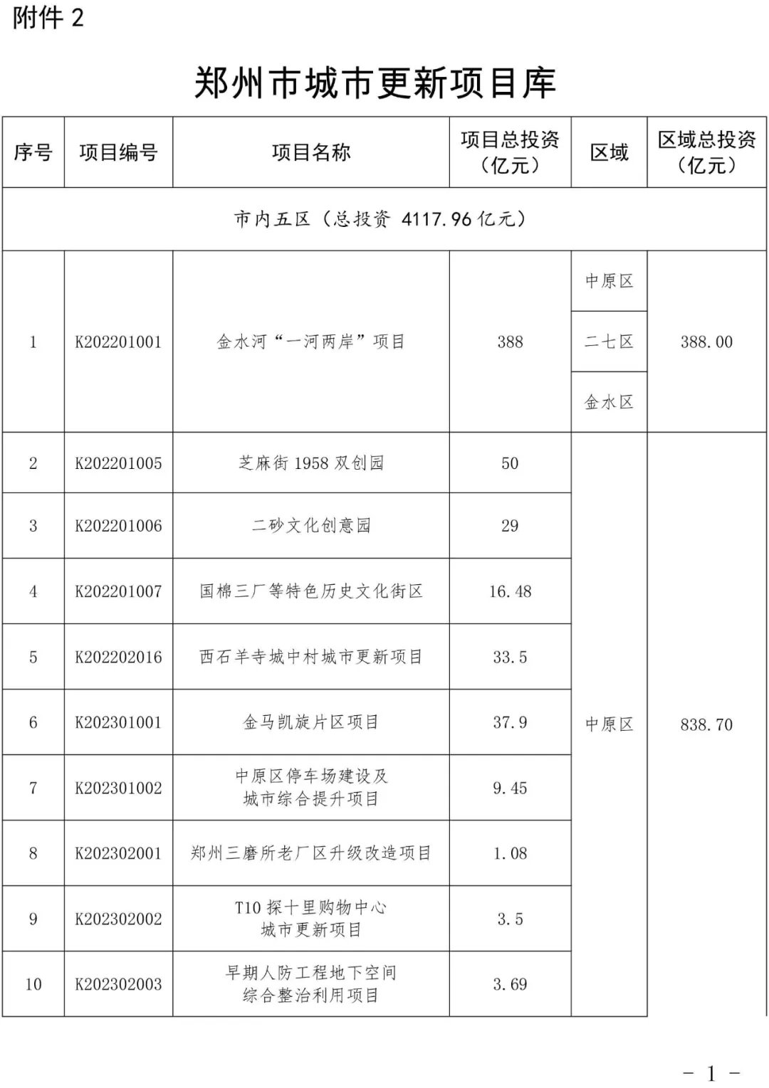 3月26日,記者從鄭州市城市更新工作領導小組獲悉,為積極穩妥實施城市更新行動,進一步提高我市城市更新項目庫質量,依據《鄭州市城市更新實施辦法(試行)》(鄭政辦〔2023〕18號)等相關要求,該領導小組對城市更新項目庫進行調整并予以發布。