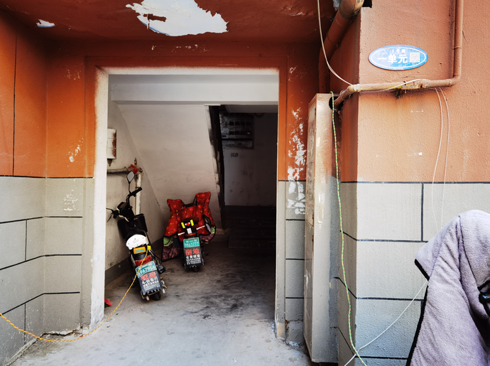 在16號樓1單元門口,記者看到了由6樓窗口垂下的充電線,樓洞內停放的電動車旁邊還有兩個插線板,順著電線可以找到兩個插線板分別來自與4樓和6樓居民家中。
