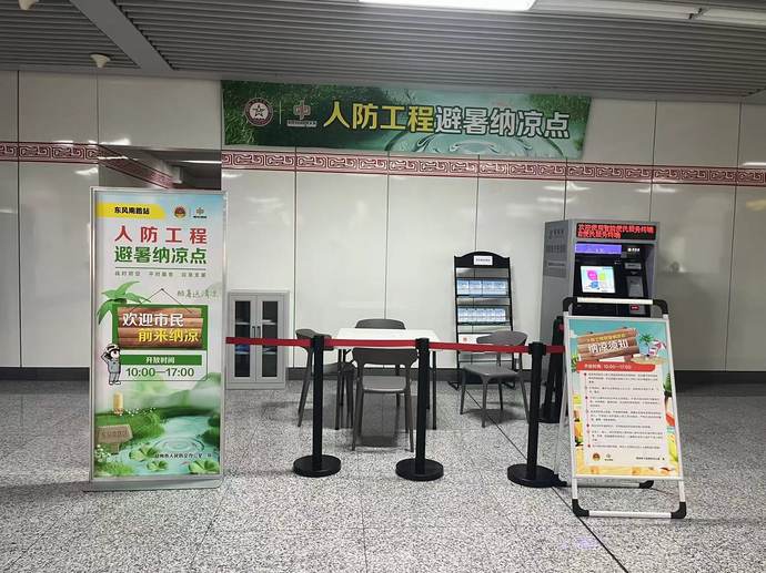 為了給市民提供更加安全、舒適、便利的避暑納涼環境,去年我市首次設置了10處地鐵站點為人防工程納涼點,受到群眾的歡迎和好評。伴隨著地鐵建成線路的增加,今年地鐵納涼點增至20處。今年結合地鐵站點特色對納涼點場地布置進行了精心設計,設置了國防知識、防災減災宣傳展區,每個地鐵站納涼點位還配備了休息桌椅、報刊雜志、國防知識宣傳資料、雨衣、防暑藥品等物品。