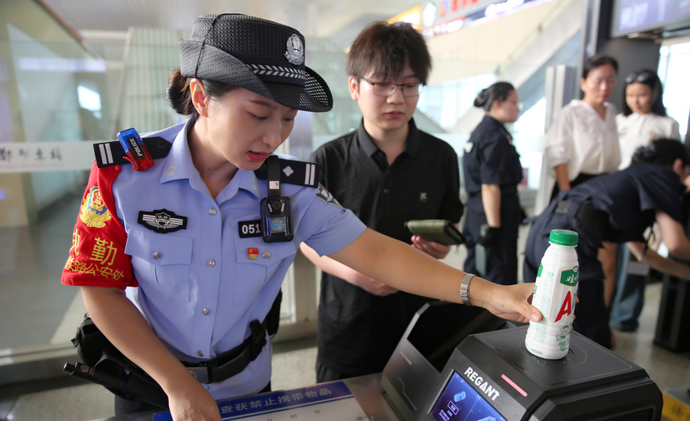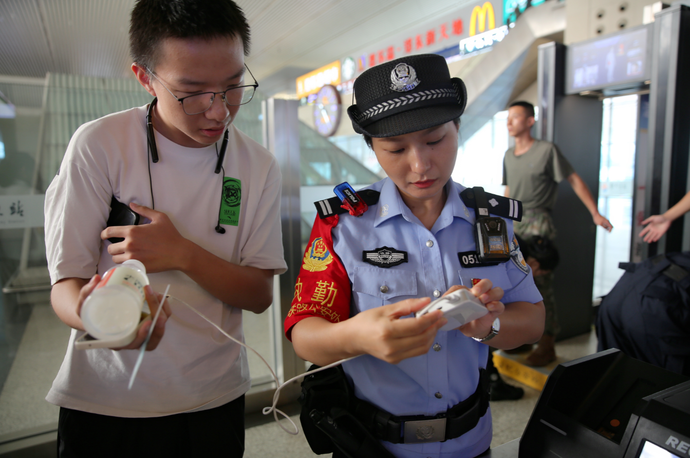 充電寶、各類自噴壓力容器類的物品,馬娜一個也不放過。記者看到,在各個安檢口,在提醒旅客禁止攜帶危險物品進站乘車的基礎上,各民警對安檢查危工作情況進行現場督導檢查,督促安檢工作人員做好對乘車旅客的人身安檢,對乘客攜帶的物品、包裹嚴格按照要求檢查,確保“人干凈、物干凈”;對攜帶易燃易爆品、銳器、鈍器等危險品的旅客全面落實核查措施,問清攜帶緣由及用途,不放過任何疑點。