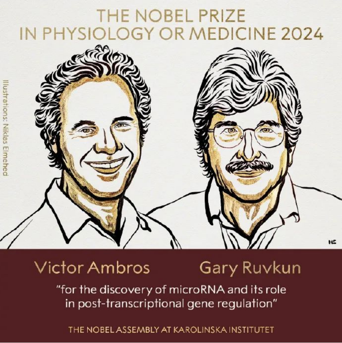 瑞典卡羅琳斯卡醫學院7日宣布,將2024年諾貝爾生理學或醫學獎授予維克多·安布羅和加里·魯夫昆,以表彰他們發現了microRNA及其在轉錄后基因調控中的作用。