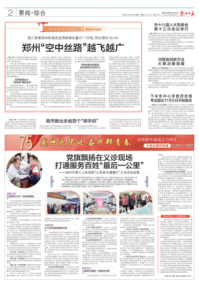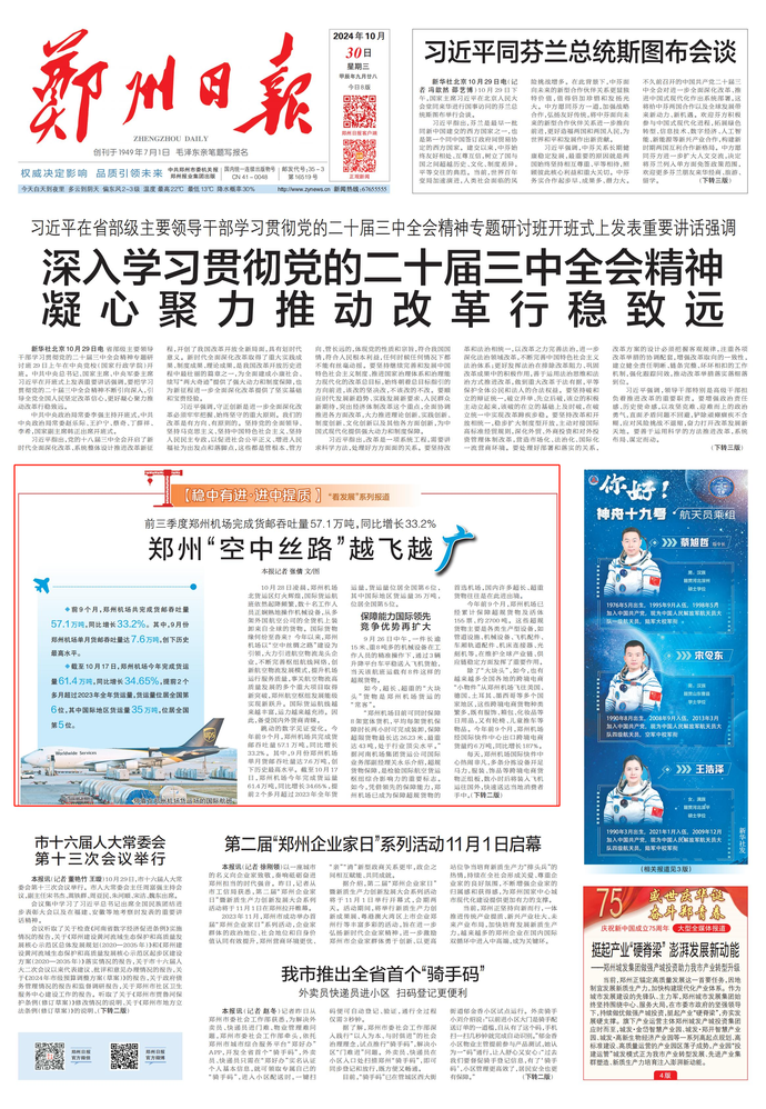 ◆截至10月17日,鄭州機場今年完成貨運量61.4萬噸,同比增長34.65%,提前2個多月超過2023年全年貨運量,貨運量位居全國第6位,其中國際地區貨運量35萬噸,位居全國第5位。