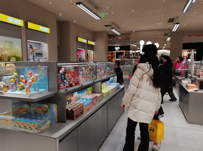 環顧店內,各種款式的盲盒系列琳瑯滿目。端詳展示柜里的盲盒及公仔,一個個精致可愛、靈巧乖萌。但它們要是“躲”在盒子里面,要想買到特別喜歡的某一款,那就全靠感覺和運氣了。這也是為啥顧客對盲盒“上頭”的主要原因。