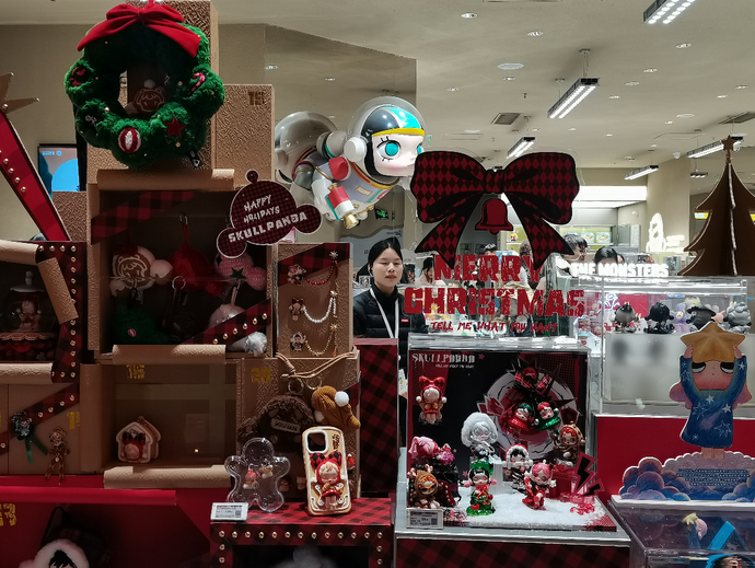 看見顧客進店,店員們也不時迎上前為他們介紹。其中一名女店員正在挨個展示柜盤點各個盲盒,仔細查看盲盒外包裝完整性,“盲盒,是將商品放入封閉包裝的一種銷售形式,只有將盒子拆開才能得知里面的商品款式是什么。因此,我們門店內銷售的盲盒商品,必須保證包裝完整封閉,不能有破損。”