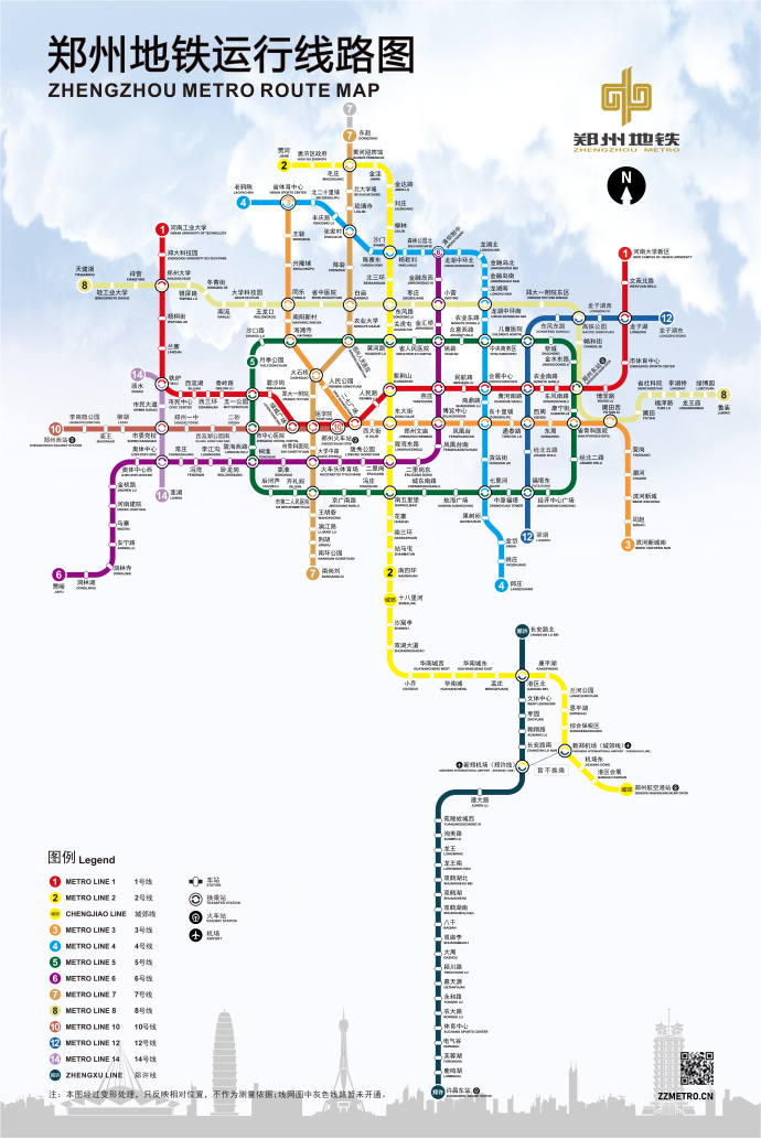 隨著7號線、8號線的加入,鄭州地鐵累計開通13條地鐵線路。