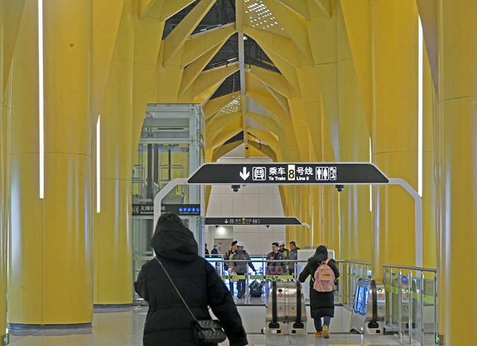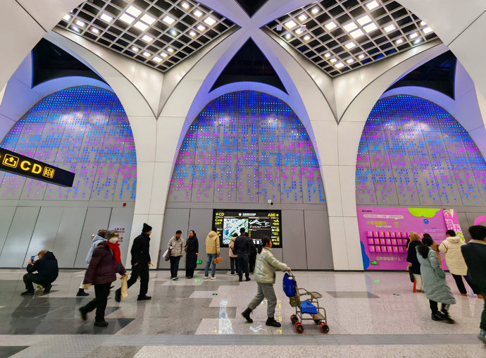 4號線以科技藍為主色調,在線網中首次采用數字交互技術,鯨魚“游進”地鐵站引爆網絡,是當之無愧的“科技體驗線”。