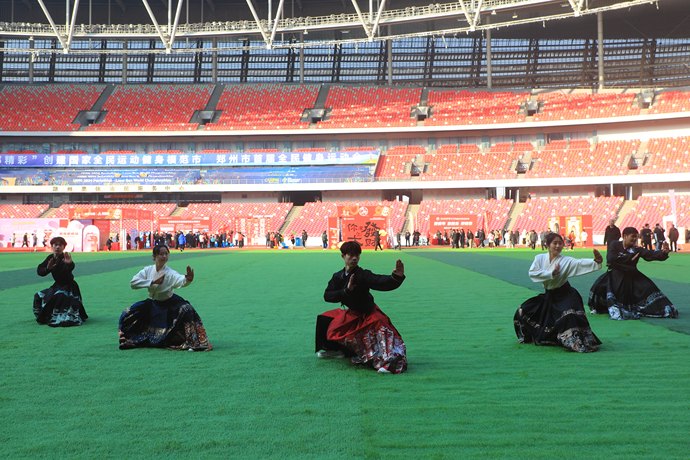 如果說在鄭州奧體中心外圍舉行的元旦長跑活動詮釋的是競賽的緊張與激烈,突出“跑起來”的主題,那么在鄭州奧體中心體育場內進行的鄭州市首屆全民健身運動會演繹出的則是全民運動、全民共享的多彩與歡樂,突出“玩起來”的創意。