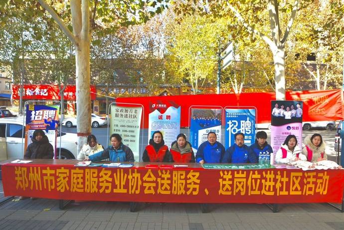 正值年終大忙時節,鄭州陽光家政服務有限責任公司、河南家可美家政服務有限公司、鄭州綠城搬家服務有限公司、河南大豫家政服務有限公司和鄭州二七區悅好家政服務有限公司,積極響應協會號召派出業務骨干參加此次活動,將優質家政服務和崗位送到居民身邊。