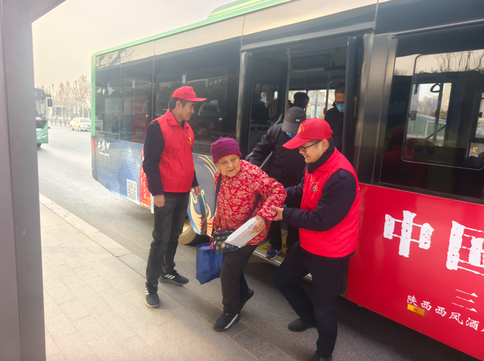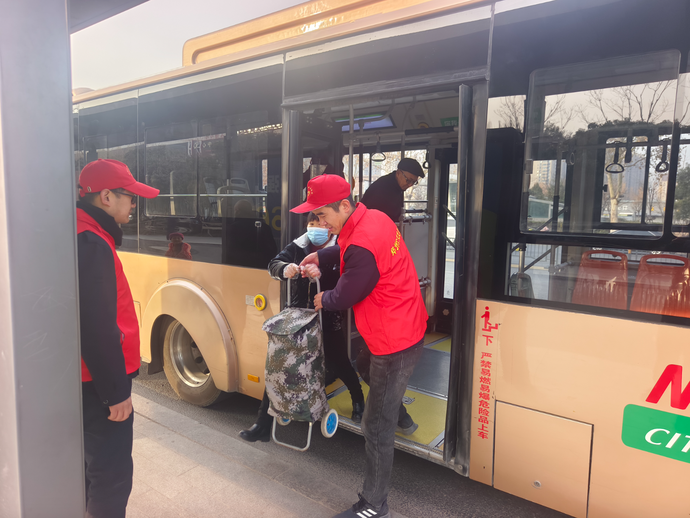 “你要坐的G9路車來了,我幫你把包抬上車,車停穩再上。”志愿者徐祖林和王曉陽當即把行李搬上了公交車。“大爺,你坐幾路車了?”志愿者劉國際熱情問詢了幾位等車的老人。