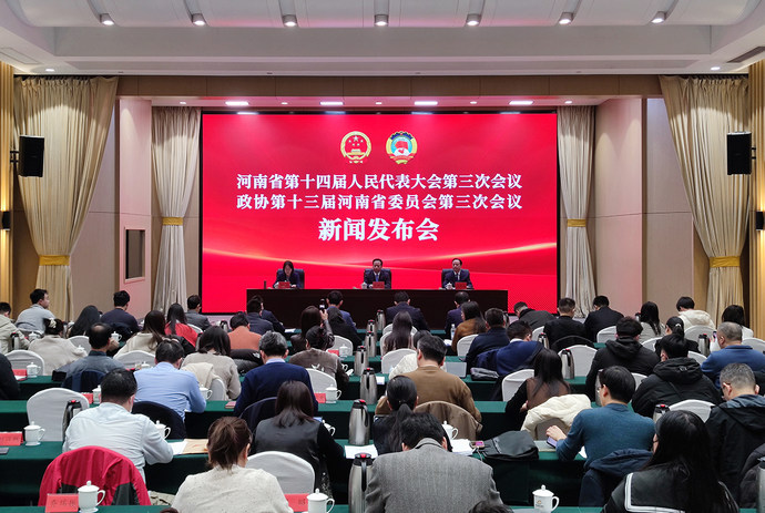 1月14日,2025年河南省兩會新聞發布會在鄭州召開。省人大常委會秘書長吉炳偉、省政協秘書長汪中山出席并分別介紹有關情況,省委宣傳部副部長平萍主持新聞發布會。