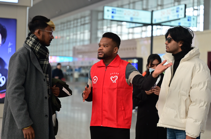 每天鄭州東站候車大廳中部的心馨黨員服務臺,前來問詢的旅客絡繹不絕。與往年春運不同的是,志愿者工作人員中,多了幾位身著紅馬甲的外國留學生。河南實行外國人240小時過境免簽新政以來,許多外籍游客入豫游玩。外國留學生發揮外語優勢,為需要幫助的外籍旅客提供服務。