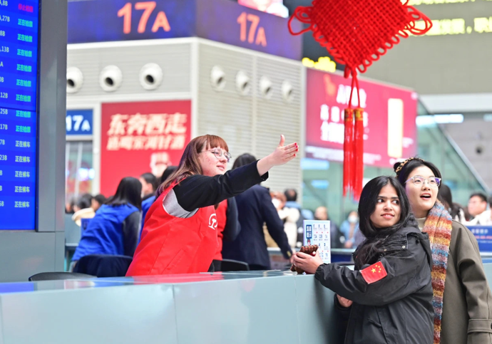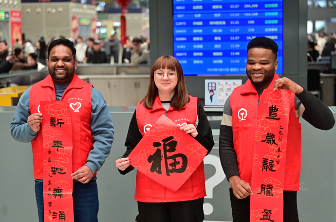 作為春運志愿者,他們用心服務南來北往的旅客。當然,這群可愛的外國友人也沉浸式感受著中國春運的獨特氛圍,留下一份關于春運的美好記憶。