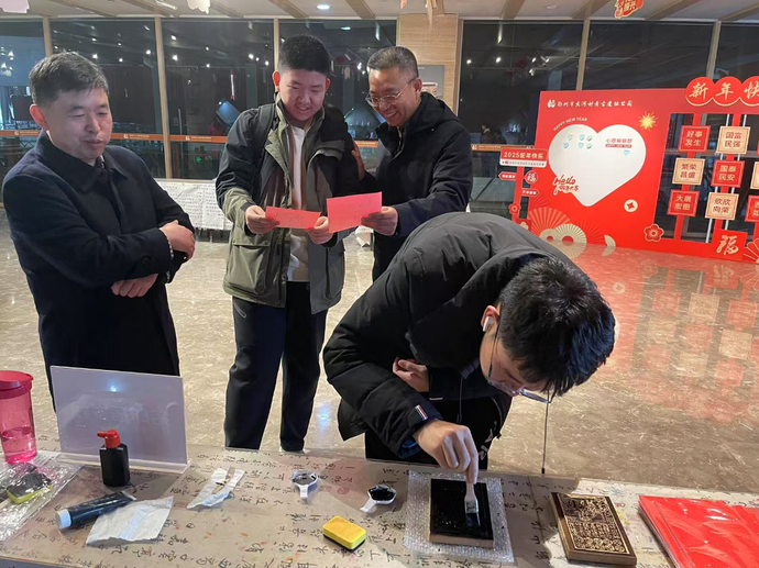 此外,博物館還精心打造了一個豐富多彩的活動市集。在拓印壓歲錢區域,游客們可以親手體驗傳統的拓印技藝,將寓意吉祥的圖案拓印在特制的紙張上,制作出獨一無二的“壓歲錢”,感受傳統文化的韻味。榫卯小游戲挑戰賽吸引了眾多親子家庭參與,大家齊心協力,通過拼接榫卯結構,不僅鍛煉了空間思維能力,還深入了解了中國傳統建筑的智慧。心愿編輯部里,游客們紛紛寫下自己對新一年的美好期許,為新年祈福。書法寫“福”字區域,游客們親自書寫寓意吉祥的“福”字......