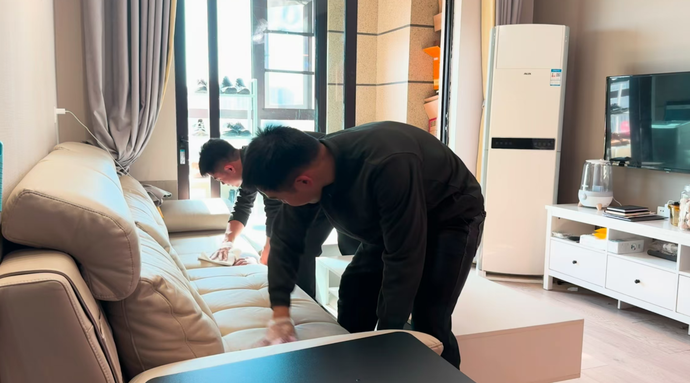 “第一次上門服務時,面對廚房重油污完全無從下手。”周帥龍坦言,初入家政行業時,他常因缺乏經驗而陷入窘境。有一次,客戶問周帥龍墻上壁布有污漬擦不掉該怎么處理,一下把他難倒了。為此,周帥龍報名了專業的家政培訓課程,系統學習各類清潔技巧、服務規范等常識。此外,他還向有經驗的同行請教。通過與資深從業者的交流,周帥龍獲取了寶貴的經驗和建議,并在實際工作中不斷實踐和總結,逐步積累起豐富的實戰經驗。隨著時間的推移,周帥龍逐漸熟悉了業務流程,提高了服務水平,進一步制定了標準化的服務手冊。