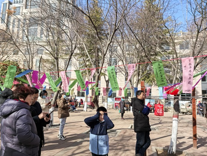 在二七路某大型商場,商家為吸引元宵客流,營造節日氛圍,舉辦了有獎猜燈謎活動,線上線下同時進行,現場的燈謎前也是人頭攢動,不少人津津有味地面對謎面琢磨起來。