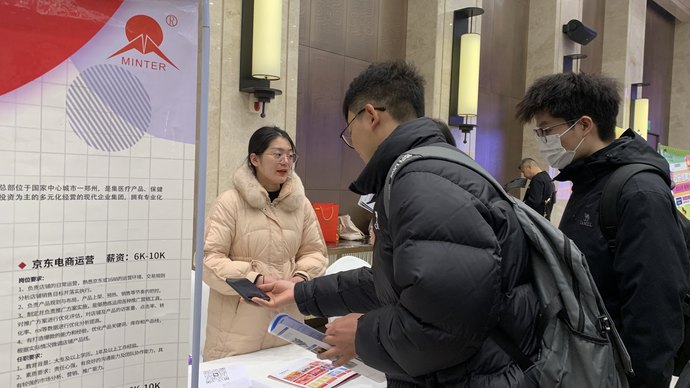 剛從國外碩士畢業回來的甘棠今天跟媽媽一起來招聘會尋找就業機遇。“我是工商管理專業,今年剛畢業,崗位需求是比較看中公司的發展前景和員工的上升空間。外貿方向現在是非常好的就業趨勢,希望找一個工作地點在鄭州的崗位。”已經參加過兩次線下組織的招聘會活動的甘棠直言,線下招聘會的公司崗位信息同步更迅速。“之前查看一家公司崗位,發現線下提供的崗位,還沒有同步到線上。”