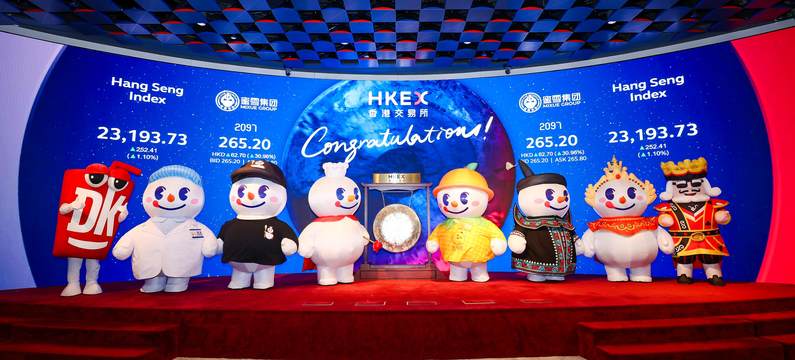 上市當天,蜜雪冰城的超級IP、終身代言人雪王和他的7名伙伴一起走上舞臺,共同“見證”蜜雪集團掛牌上市。據了解,他們分別是代表全體消費者的“阿桔”雪王、代表供應鏈上游農業深耕者的“咖農”雪王、代表加盟商和門店茶飲師及全體員工的“奮斗青年”雪王、代表“創新與專業精神”的“研發”雪王、代表全球化的“泰富貴兒”雪王,以及代表蜜雪供應鏈品牌大咖國際的“大咖哥”和幸運咖品牌IP“老K”。有網友稱,這或許是在香港聯交所舉辦的最萌的一場上市儀式。