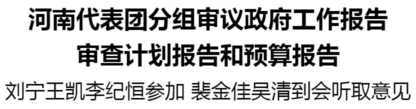3月6日,十四屆全國人大三次會議河南代表團舉行分組會議,審議政府工作報告,審查計劃報告和預算報告。省委書記、省人大常委會主任、河南代表團團長劉寧,省長、河南代表團副團長王凱,十四屆全國人大農業與農村委員會副主任委員李紀恒參加審議審查。退役軍人事務部部長裴金佳、中國證監會主席吳清到會聽取意見。