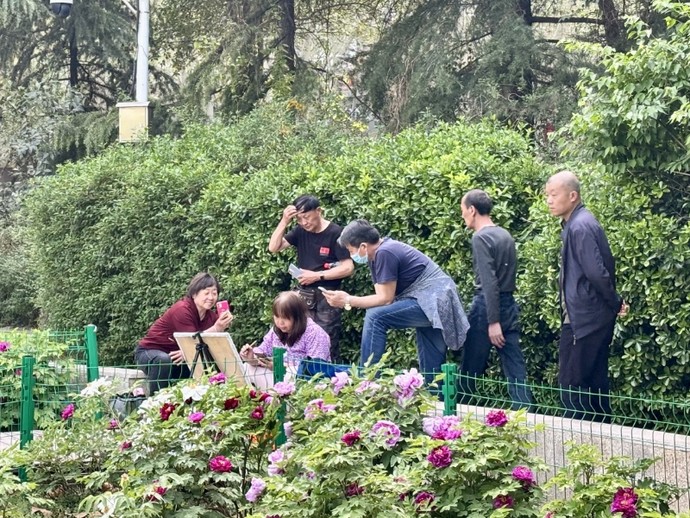 連日來鄭州風和日麗,碧沙崗公園牡丹園中游人如織,或駐足凝望,或拍照留念,繪畫愛好者架起畫板勾勒春色,小朋友們穿梭花間歡笑嬉戲,滿園芬芳中笑語盈盈,熱鬧非凡。