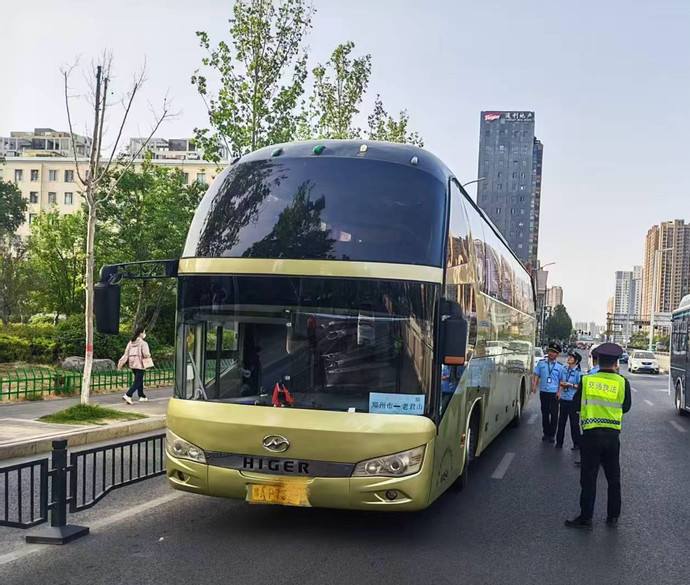 針對旅游包車安全隱患,執法支隊聯合文旅部門強化旅游包車執法監管,在綠城廣場、紫荊山公園和二七廣場等區域開展聯合執法檢查,嚴厲查處班車不按照批準的配客站點停靠、包車未持有效包車牌運行、異地違規營運及關閉動態監控等違法行為。