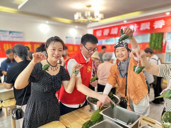 “我去年包粽子,包成了正方形。”“我更搞笑,包完了沒有扎緊,一煮全碎了。”現場歡聲笑語不斷,大家一邊交流著包粽子的心得,一邊分享著端午節的趣事,濃濃的節日氛圍在空氣中彌漫開來。
