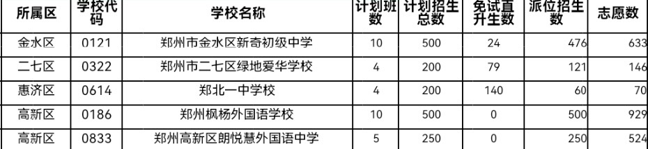 鄭州市中原區西斯達城市森林學校、中原領航實驗學校、鄭州市二七區鄭達實驗學校、鄭州市二七區國際城中學、鄭州市二七區滬華國慶學校、鄭州市管城回族區嵩陽學校、鄭州市管城回族區啟元中學、鄭州市金水區建業外國語初級中學、河南少年先鋒學校、鄭州市金水區一八初級中學、鄭州市金水區勵德雙語初級中學、鄭州市金水區勤禮初級中學、鄭州市金水區經緯學校、鄭州市金水區新棟外國語學校、鄭州市惠濟區森林湖學校、鄭州陳中實驗學校、鄭州市鄭中國際學校、鄭州長明中學、鄭州經開區致遠中學、鄭州國慶中學、鄭州市鄭東新區上海師范大學附屬鄭州啟佳學校、河南省實驗學校裕鴻國際學校、鄭州航空港區英迪雙語學校。