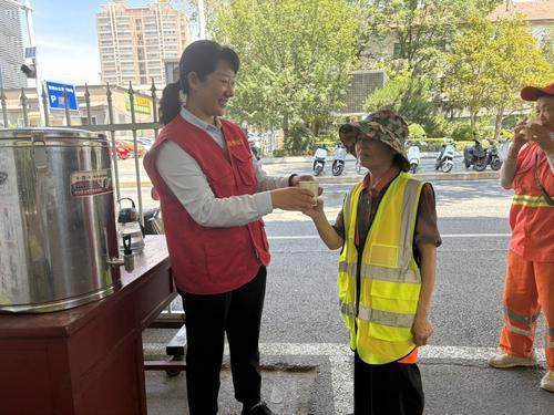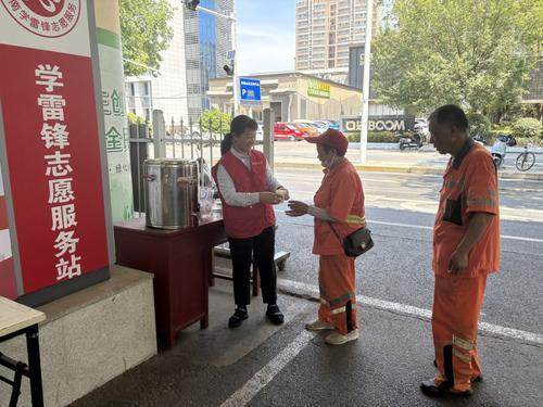 隨著太陽不斷升高,氣溫節節攀升。愛心驛站外,候車的市民、紫荊山周邊的環衛工紛紛被吸引而來。志愿者們見狀立刻從保溫桶中盛滿梔子水,遞到他們手中,“天熱,快喝點梔子水解解暑。”環衛工李大叔接過水一飲而盡,抹了把額頭的汗珠,憨厚的笑容里滿是感激,忍不住感慨:“這梔子水又香又解渴,太謝謝你們了!”