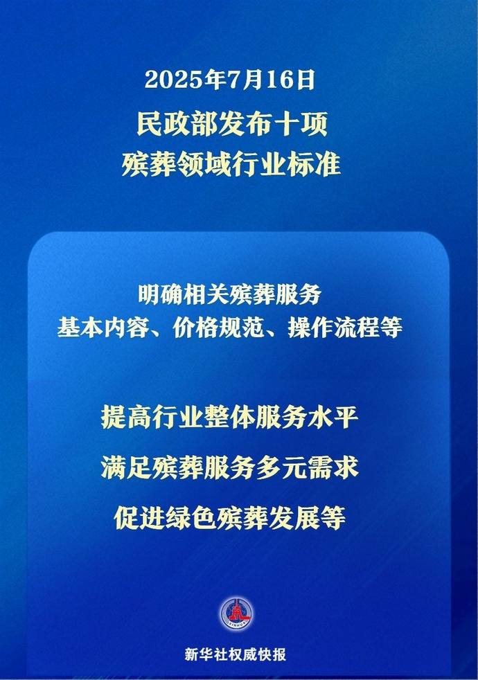 民政部介紹,制修訂系列標準,是回應民生關切、規范市場秩序、推動行業高質量發展的重要舉措,為監管部門查處違規行為提供了明確依據,有助于進一步規范相關殯葬服務,促進綠色殯葬發展,助力保障逝有所安、喪有所尊、思有所依。