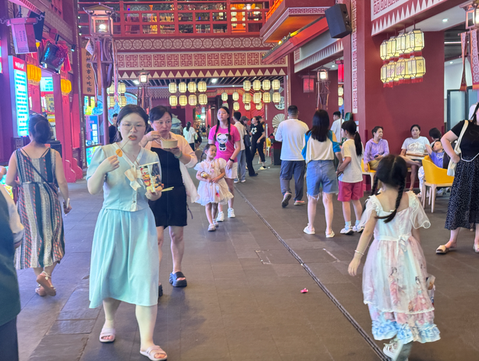 當夜晚愈發璀璨,消費也隨之火熱。霓虹光影里,熙攘人群往來穿梭,有市民沉迷于多彩活動的快樂時光,有市民沉浸在打折優惠的購物氛圍,有市民沉醉于特色美食的酣暢滋味。夜游的愜意、夜購的欣喜、夜食的香氣,勾勒出鄭州夏日里最生動的消費剪影。