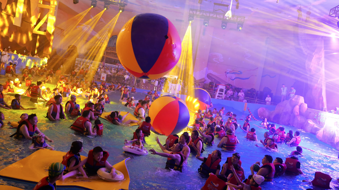 “我們在市中心打造了五層立體歡樂王國,面積達7000平方米的室內恒溫水世界融合十余種主題溫泉池與近千平方米造浪池,讓大家享受到酷暑難得的清涼與愜意。”據相關負責人介紹,該度假區首創“白+黑”分時運營體系,精準切割時段,以滿足消費者多元需求。日間聚焦親子家庭,打造安全可控、趣味盎然的室內游樂基地;夜晚則無縫切換為活力四射的青年提供社交場域。