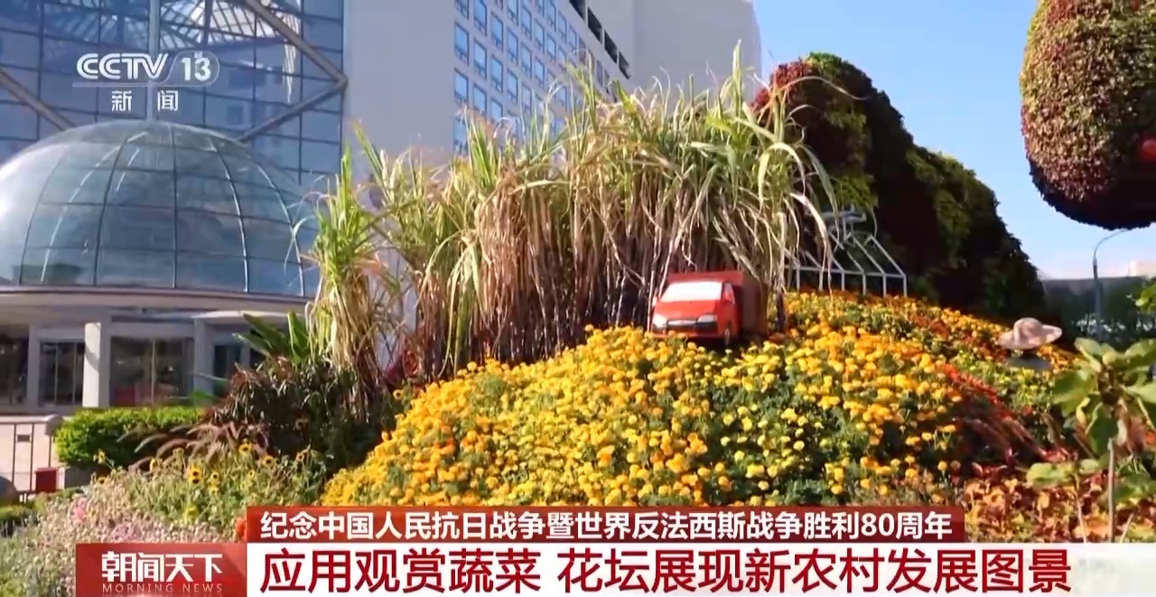 這邊還能看到有一排甘蔗,這也是創新性地在花壇中首次應用這些農作物材料和觀賞蔬菜,還原生產場景,展現農旅融合、經濟自足的新農村發展模式。