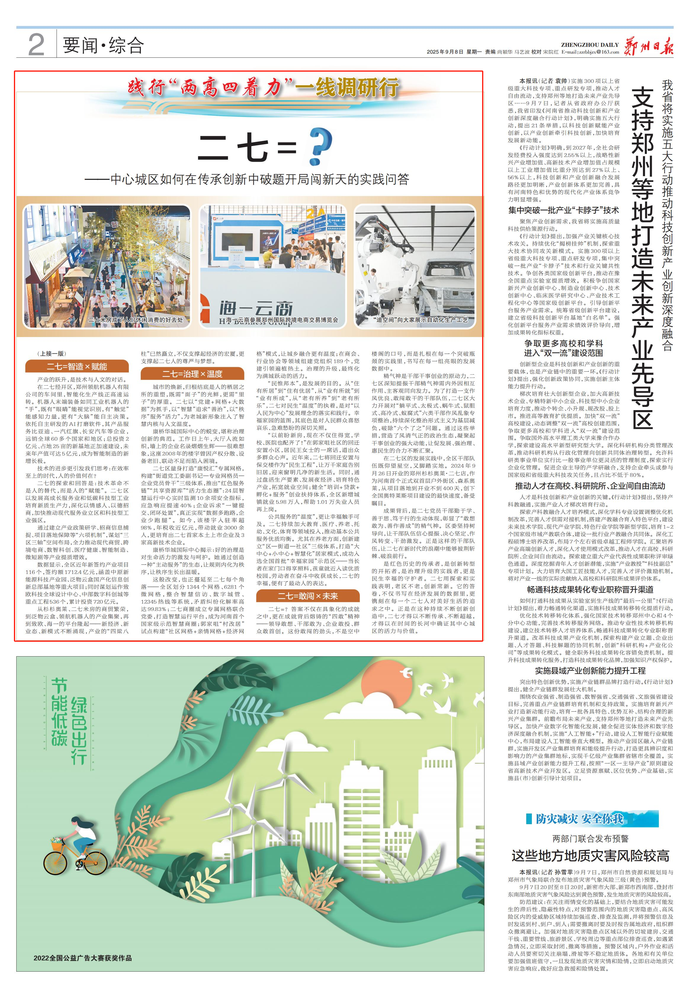 二七的探索和回答是:技術革命不是人的替代,而是人的“賦能”。二七區以發展高成長服務業和低碳科技型工業培育新質生產力,深化以情感人、以德招商,加快推動現代服務業立區和科技型工業強區。
