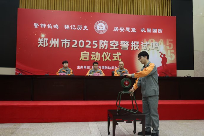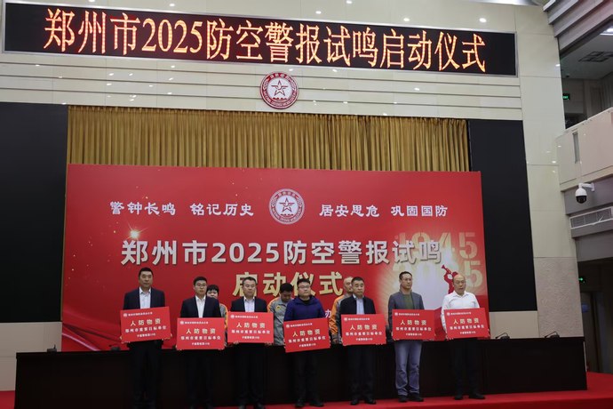 儀式當天,鄭州市國防動員(人民防空)辦公室緊扣“警鐘長鳴、銘記歷史,居安思危、鞏固國防”活動主題,同步推進“防空減災宣傳雙進”行動,線下進社區、進校園設立宣傳點,現場講解防空警報識別、家庭應急物資儲備等知識;線上聯合新媒體平臺,制作播出國防公開課,開展國防知識答題等活動,擴大社會宣傳面,進一步提升全市防空預警報知能力,強化全民防空防災意識和自救互救能力。