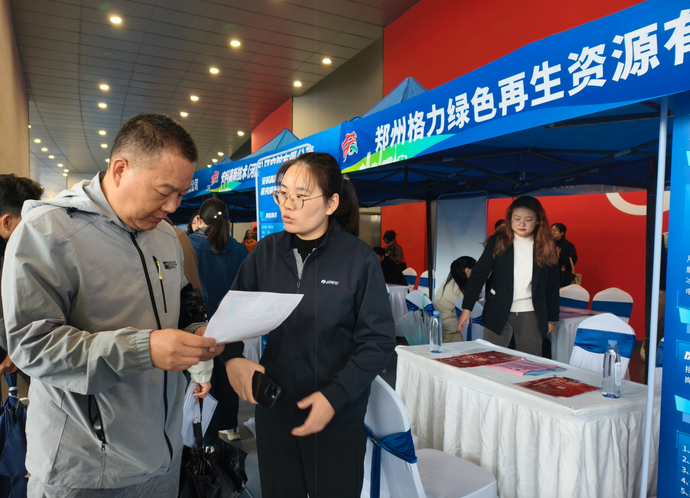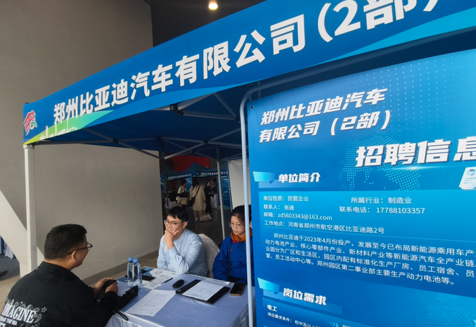 沿著東側通道往前走,更多“雙向奔赴”的畫面在雨幕中鋪展:北京大學鄭州新材料高等研究院的展臺前,3位博士圍著招聘負責人討論“新型陶瓷材料研發”的聲音蓋過了雨聲;鄭州萬通汽車學校的招聘桌前,李昊天的簡歷上“比亞迪4S店技術主管”經歷,“高壓電工證”“新能源汽車診斷師證”的復印件泛著微光。